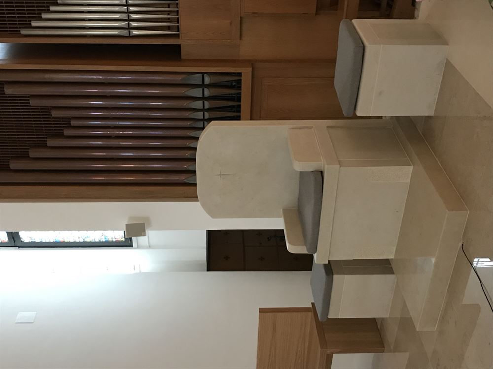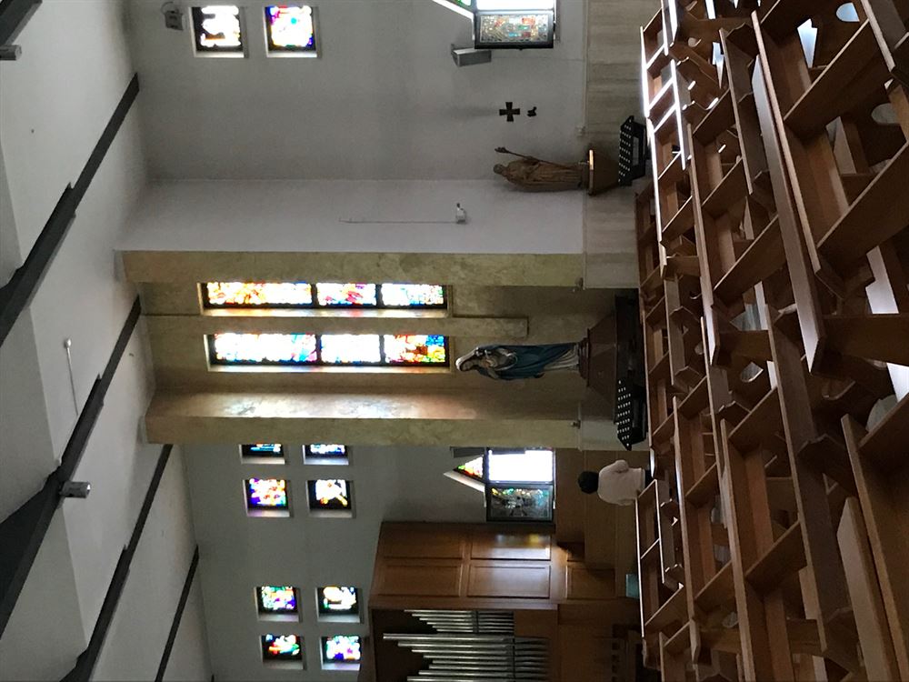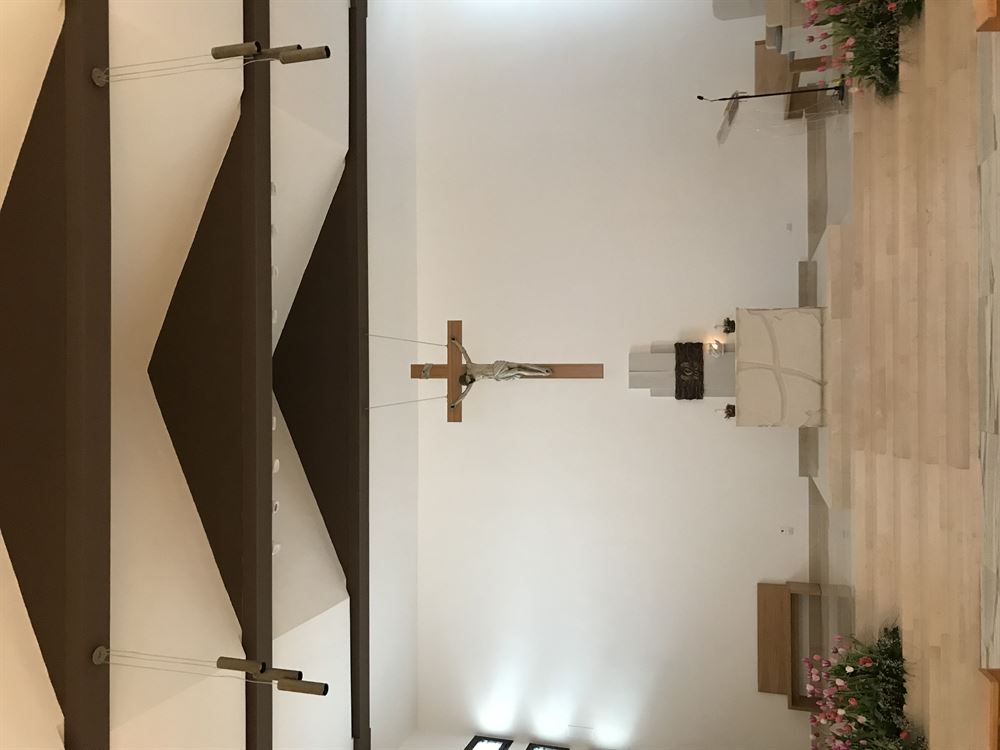 Adeguamento liturgico della parrocchia Cuore Immacolato di Maria. L’intervento è consistito in un rinnovamento di tutti gli impianti tecnologici, e dal punto di vista liturgico ha restituito lo spazio sacro all’esercizio della Liturgia secondo i nuovi canoni del rinnovamento liturgico della CEI